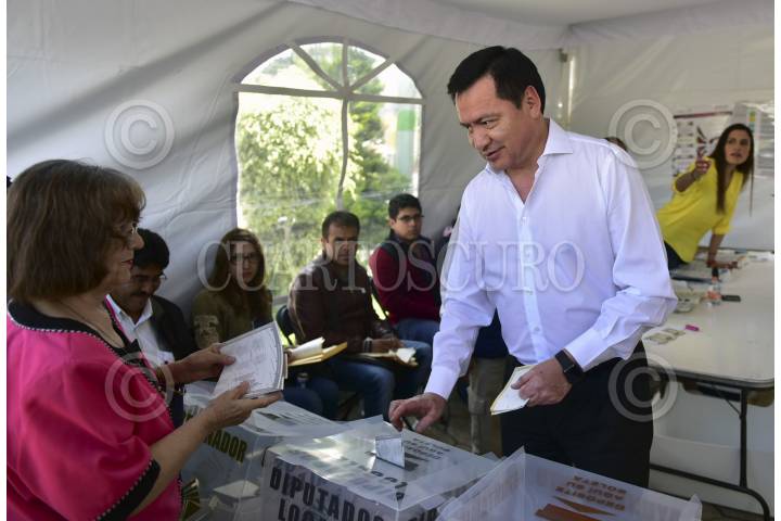 PACHUCA DE SOTO, HIDALGO, 05JUNIO2016.- El secretario de Gobernación, Miguel Ángel Osorio Chong, emitió su voto con motivo de la jornada electoral que se celebra en 14 entidades del país. FOTO: CUARTOSCURO.COM
