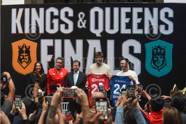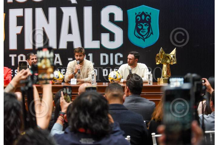 TOLUCA, ESTADO DE MÉXICO, 20NOVIEMBRE2024.- Gerard Piqué presidente de la Kings League & Queens League Oysho Spain y ex jugador del FC Barcelona y el ex futbolista Miguel Layún, presidente Kings League Santander & Queens League Oysho Americas, anunciaron la realización de la Kings & Queens Finals que se llevará a cabo en el estadio Nemesio Diez el próximo 21 de diciembre, durante la conferencia estuvieron acompañados por Francisco Suinaga VP Club Deportivo Toluca y Juan Maccise, Presidente municipal de Toluca. FOTO: CRISANTA ESPINOSA AGUILAR /CUARTOSCURO.COM