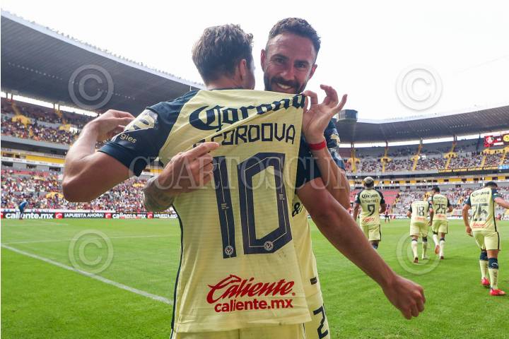 Miguel Layún celebró con Sebastián Córdova su gol, que le dio la victoria al América ante el Atlas.