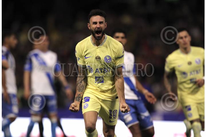 Festejo de Miguel Layún durante el partido de vuelta América vs Puebla dentro de la fase de cuartos de final de la Liguilla MX, Torneo Apertura 2022, en el Estadio Azteca.