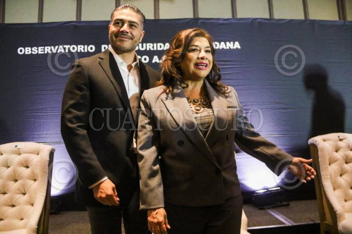 CIUDAD DE MÉXICO. 11ABRIL2024.- Clara Brugada Molina, candidata por la Coalición Sigamos Haciendo Historia, a la jefatura de Gobierno así como Ernestina Godoy y Omar García Harfuch aspirantes al Senado y el suspirante a la alcaldía de Miguel Hidalgo Miguel Torruco se reunieron con el observatorio de seguridad, Asociación Civil, en el Centro Asturiano de Polanco. FOTO: VICTORIA VALTIERRA/CUARTOSCURO.COM