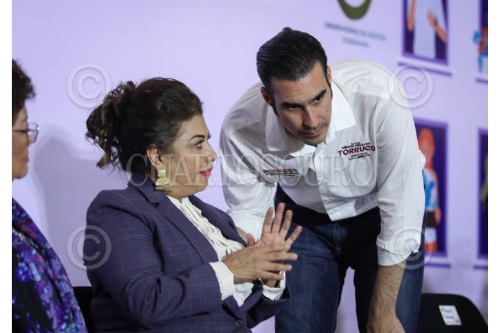 CIUDAD DE MÉXICO, 23MAYO2024.- Clara Brugada candidata a la jefatura de gobierno por morena y Miguel Torruco durante la presentación de “Observatorio de Gestión Ciudadana” en reunión con vecinas y vecinos de la alcaldía Miguel Hidalgo que se llevó a cabo en la Hacienda Santa Rosa. FOTO: ANDREA MURCIA /CUARTOSCURO.COM