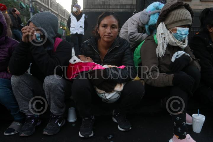 Integrantes de la Caravana Migrante, que se refugian en la Casa del Peregrino San Juan Diego, llegaron en camiones a Palacio Nacional para pedir un libre tránsito por el país