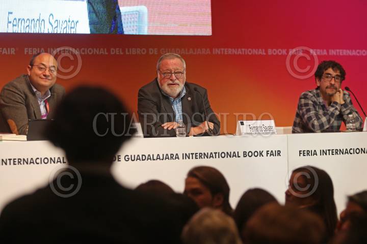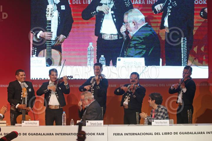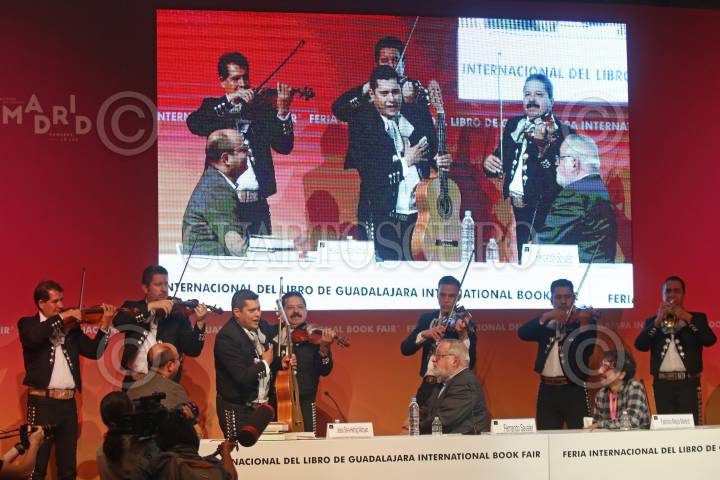 GUADALAJARA, JALISCO, 27NOVIEMBRE2017.- Mil Jóvenes con Fernando Savater fue el evento que encabezo el escritor español y al que sorprendió un Mariachi tapatío por su aniversario 70, esto en el marco de la edición 31 de la Feria Internacional del Libro de Guadalajara, que se lleva a cabo en las instalaciones de la Expo. FOTO: FERNANDO CARRANZA GARCIA / CUARTOSCURO.COM