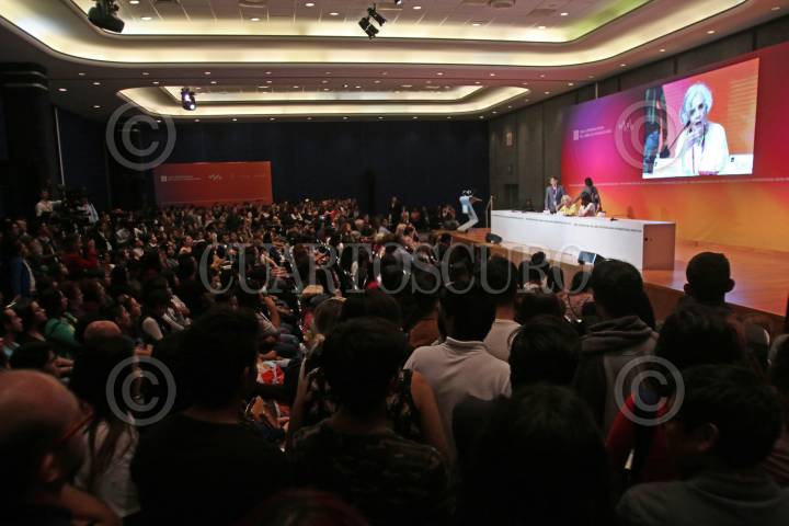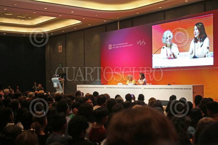 GUADALAJARA, JALISCO, 28NOVIEMBRE2017.- Mil Jóvenes con Elena Poniatowska fue el evento en el que participo esta tarde la escritora mexicana, esto en el marco de la edición 31 de la Feria Internacional del Libro de Guadalajara que se lleva a cabo en las instalaciones de la Expo. FOTO: FERNANDO CARRANZA GARCIA / CUARTOSCURO.COM