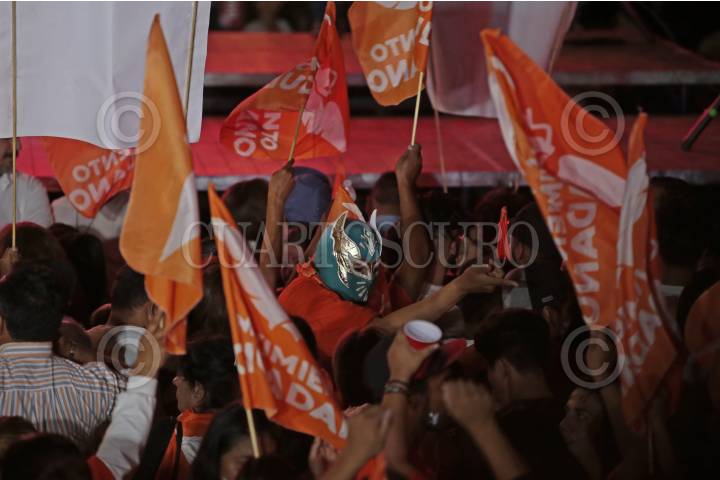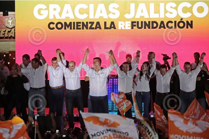 GUADALAJARA, JALISCO, 02JULIO2018.- Enrique Alfaro candidato del Partido Movimiento Ciudadano gana la gubernatura del estado y celebra el logro en la Glorieta de la Minerva ante aproximadamente mil 500 personas. FOTO: FERNANDO CARRANZA GARCIA / CUARTOSCURO.COM