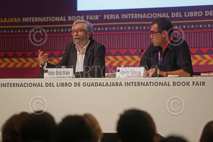 GUADALAJARA, JALISCO, 02DICIEMBRE2019.- Mil Jóvenes con Antonio Muñoz de Molina” fue el encuentro que encabezo el escritor español, esto en el marco de edición 33 de la Feria Internacional del Libro de Guadalajara en donde como país invitado de Honor es la India. FOTO: FERNANDO CARRANZA GARCIA / CUARTOSCURO.COM