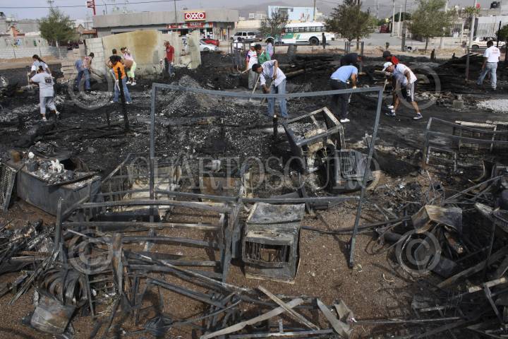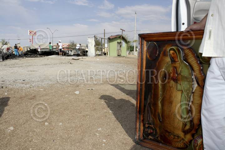CIUDAD JUÁREZ, CHIHUAHUA, 13JUNIO2012.- Durante la madrugada de este miércoles, se registró un incendio el cual consumió la capilla San Agustín, la cual desde hace 10 años se ha estado construyendo, ya que se contemplaba formar un templo católico. El siniestro ocurrió sobre la calles Paseos del Alba, en el fraccionamiento con el mismo nombre. Por su parte, vecinos se mostraron nostálgicos y a su vez llamaron como milagro, un cuadro de la Virgen de Guadalupe que se salvó de las fuertes llamas, manifestando que ahora sólo queda iniciar con una nueva construcción. FOTO: NACHO RUIZ /CUARTOSCURO.COM