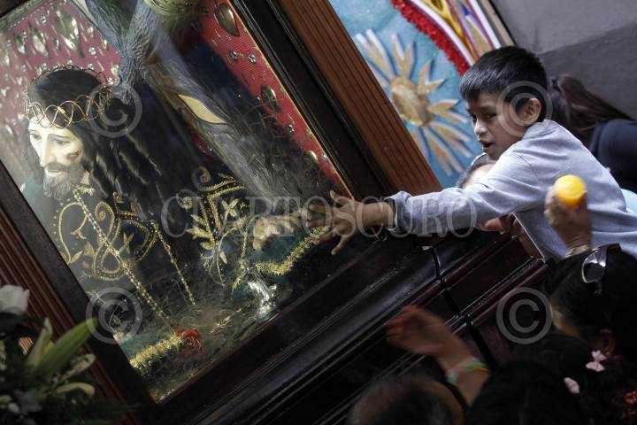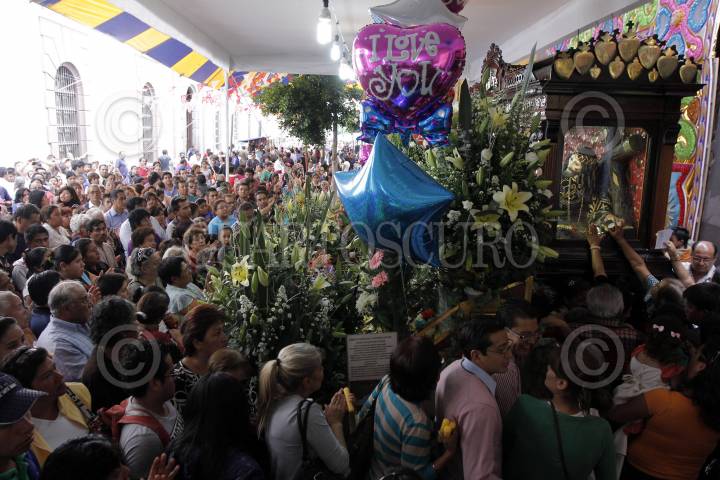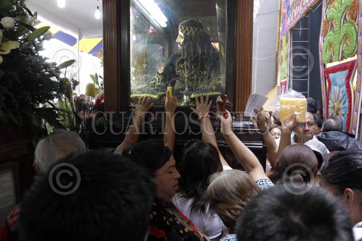PUEBLA, PUEBLA, 01JULIO2013.- Cientos de feligreses acudieron al templo de Santa Mónica a visitar al "Señor de las Maravillas" en su día, una de las mas antigüas y sin duda la imagen religiosa mas venerada de la ciudad debido a la cantidad de milagros realizados. FOTO: HILDA RIOS /CUARTOSCURO.COM