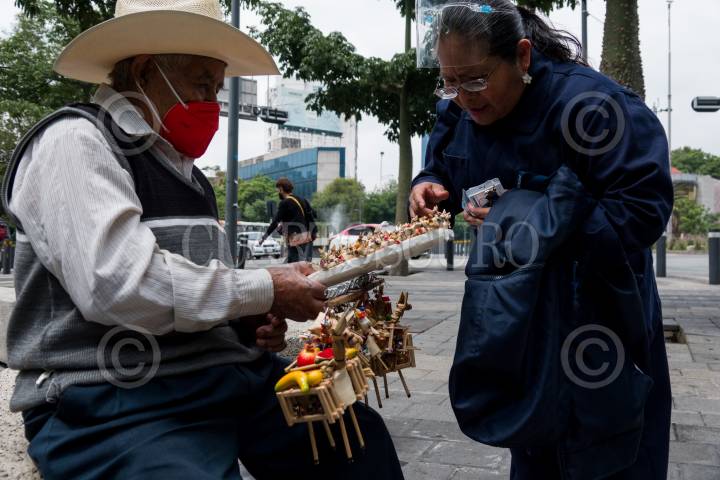 Una mujer le compra a Don José (90) que vende sus mulitas de hojas de maíz, en este jueves de Corpus Christi, en el cruce de Avenida Insurgentes Sur y Av. Río Mixcoac.