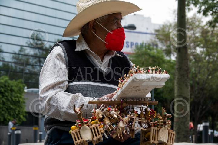 Don José (90) vende sus mulitas de hojas de maíz, en este jueves de Corpus Christi, en el cruce de Avenida Insurgentes Sur y Av. Río Mixcoac.