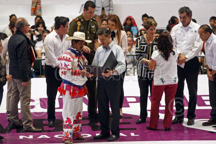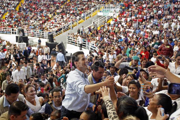 GUADALAJARA, JALISCO, 27FEBRERO2015.- El Presidente de la Republica, Enrique Peña Nieto, durante el evento donde cerro las actividades dedicadas a la Cruzada Nacional Contra el Hambre, donde ante miles de asistentes en el Auditorio Benito Juárez realizo la entrega de beneficios para personas vulnerables. FOTO: FERNANDO CARRANZA GARCIA / CUARTOSCURO.COM