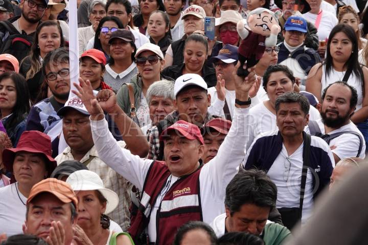 JIUTEPEC, MORELOS, 18OCTUBRE2023.- Claudia Sheinbaum Pardo, Coordinadora Nacional de la Transformación encabezo la Toma de Protesta de Comités de la Cuarta Transformación en el campo deportivo "el Kínder". La acompañaron Ulises Bravo y Mario Delgado lideres estatal y nacional de MORENA. En la imagen Rabindranath Salazar Solorio, aspirante a Coordinador Estatal de la Transformación junto a simpatizantes. FOTO: MARGARITO PÉREZ RETANA / CUARTOSCURO.COM
