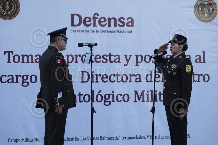 CIUDAD DE MÉXICO, 08ENERO2025.- La General Brigadier Médico Cirujano Blanca Elsi Cruz Toledo rindió protesta y tomó posesión del cargo como directora del Centro Gerontológico Militar lo que la convierte en la primer mujer en asumir este papel dentro del Servicio Médico Militar. La ceremonia estuvo presidida por el General Miguel Ángel Aguirre Lara, interino de Sanidad, y se realizó en las inmediaciones del Centro Gerontológico Militar. FOTO: GALO CAÑAS/CUARTOSCURO.COM