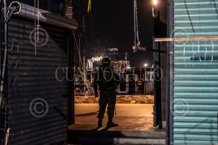 ENSENADA, BAJA CALIFORNIA, 28 DE JULIO DE 2025.- Un enfrentamiento armado registrado la noche del domingo en una embarcación, cerca del Mercado Negro de Ensenada, dejó un saldo de un hombre muerto, dos heridos y el hallazgo de varios paquetes con droga. Autoridades localizaron a los lesionados a bordo de la lancha y a un tercer individuo sin vida flotando en el agua. Los detenidos, de 61 y 58 años, fueron trasladados a un hospital bajo custodia. En la embarcación se encontraron seis paquetes con una sustancia similar a la cocaína, así como casquillos calibre .45 mm. La zona fue asegurada y la Fiscalía General del Estado quedó a cargo de la investigación. FOTOS: CHRIS NOYOLA / CUARTOSCURO.COM