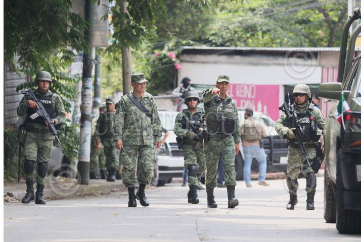JIUTEPEC, MORELOS, 06SEPTIEMBRE2024.- Una gran movilización de personal de Ejército y Guardia Nacional se desplegó luego de que se reportó que personas realizaron detonaciones de armas de fuego de alto poder en contra de una patrulla de esta última. Los hechos ocurrieron esta mañana en el Par Vial, poblado de Atlacomulco, muy cerca del plantel 02 del Colegio de Bachilleres, se reportó saldo blanco y la detención de varias personas que presuntamente participaron en la agresión, además del aseguramiento de tres fusiles AK 47. El cierre de esta vía para que la búsqueda de los agresores y procesamiento de lo asegurado por parte de la Fiscalía de Justicia del Estado, generó un caos vial en la zona por varias horas. En la imagen, (al centro, a lado de un soldado que señala) el general Ernesto José Zapata, Comandante de la Primera Región Militar, que llego al sitio de la agresión. FOTO: MARGARITO PÉREZ RETANA/CUARTOSCURO.COM