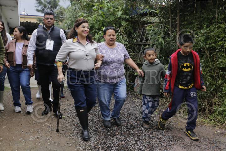 CIUDAD DE MÉXICO, 07OCTUBRE2024.- Durante un operativo de lluvias, Clara Brugada, jefa de Gobierno, acudió a las zonas afectadas de la alcaldía Xochimilco debido a las fuertes lluvias del domingo. FOTO: GOBIERNO DE LA CIUDAD DE MÉXICO /CUARTOSCURO.COM