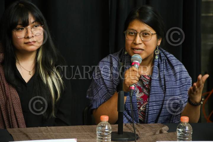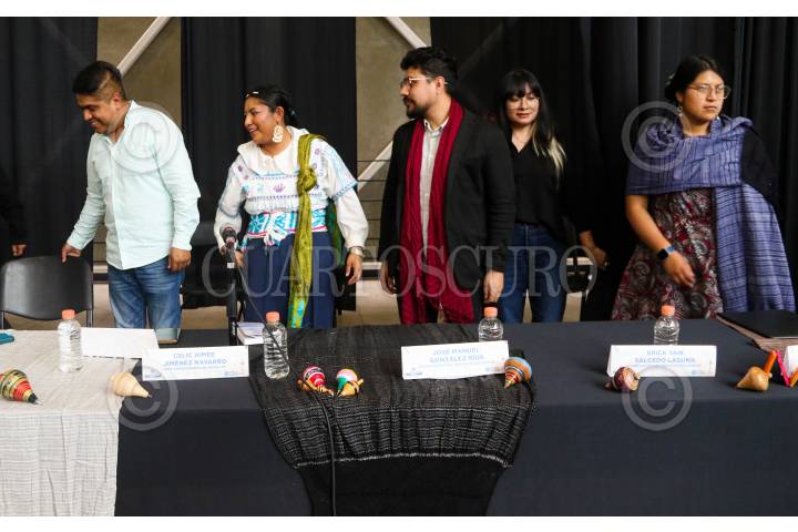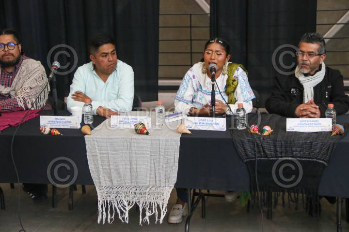 CIUDAD DE MÉXICO. 20NOVIEMBRE2024.- Conferencia del 13 festival de Pantomima, Circo y Clown, que se lleva acabo con jóvenes de las alcaldías de Milpa Alta y Xochimilco. José Manuel González, Celic Aimee Jiménez, María de los Ángeles Reyes y Celia Gaspar, entre otros jóvenes de pueblos originarios en la presentación de este evento. FOTO: VICTORIA VALTIERRA/CUARTOSCURO.COM