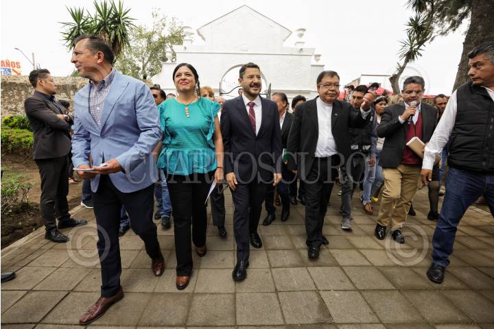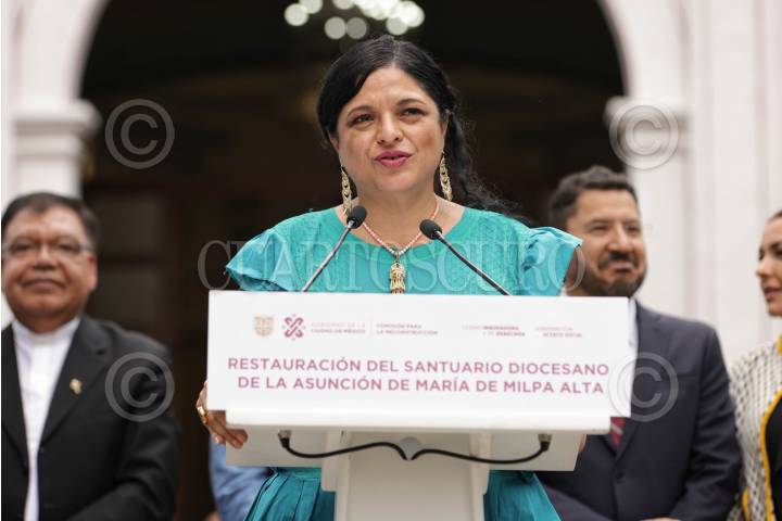 CIUDAD DE MÉXICO, 14AGOSTO2024.- El Jefe de Gobierno, Martí Batres Guadarrama, y la secretaria de Cultura del Gobierno de México, Alejandra Frausto Guerrero, entregaron las obras de restauración del Santuario de la Asunción de María, ubicado en la Alcaldía Milpa Alta, realizadas a través de la Comisión para la Reconstrucción de la Ciudad de México, en beneficio de 152 mil 685 habitantes, como parte de la rehabilitación de templos dañados por el sismo del 19 de septiembre de 2017, con el objetivo de salvaguardar el patrimonio histórico, artístico y cultural de los pueblos originarios. FOTO: GOBIERNO DE LA CIUDAD/CUARTOSCURO.COM