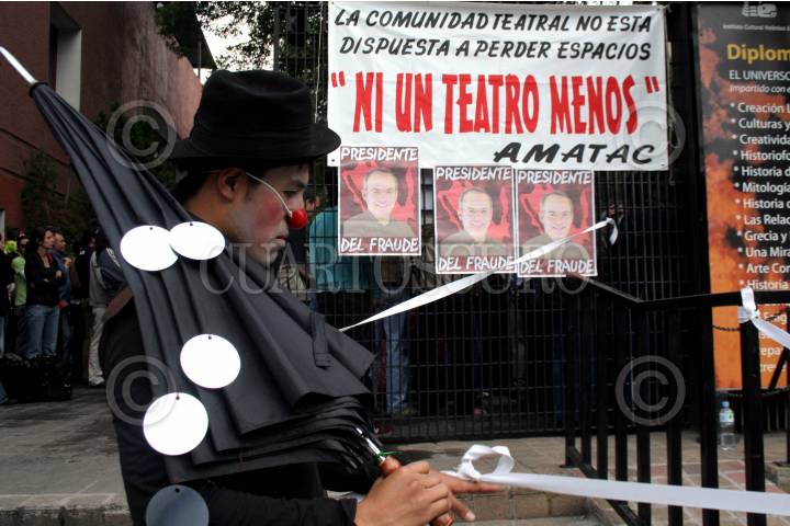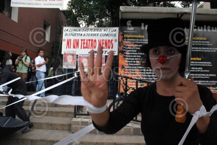 MÉXICO, D.F., 25JUNIO2007.- Decenas de actores se manifestaron a las afueras del Centro Cultural Helénico en rechazó por el posible cierre del conjunto teatral. FOTO: ISAAC ESQUIVEL/CUARTOSCURO.COM