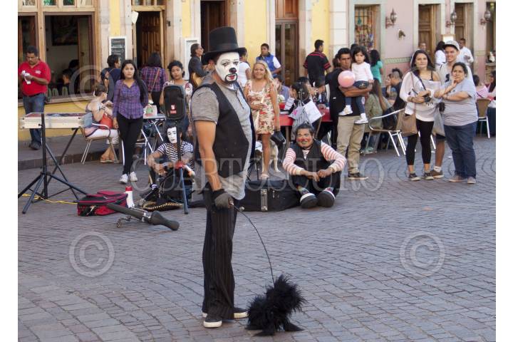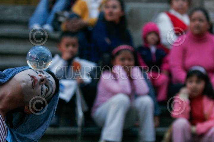 GUANAJUATO, GUANAJUATO, 30OCTUBRE2009.- Un mimo durante el espectáculo de todos los días en la Plaza de la Paz, en el centro histórico, durante la edición XXXVII el Festival Internacional Cervantino. FOTO: ALEJANDRO SANTILLANES/CUARTOSCURO.COM