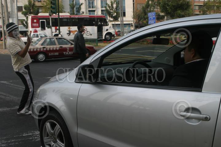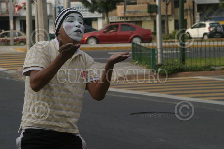 MÉXICO, D.F., 30DICIEMBRE2009.- Un mimo trabaja en el cruce de las Avenidas Chapultepec y Sonora para ganar el sustento diario ya que el nivel de desempleo ha aumentado en los últimos años. FOTO: IVÁN STEPHENS/CUARTOSCURO.COM