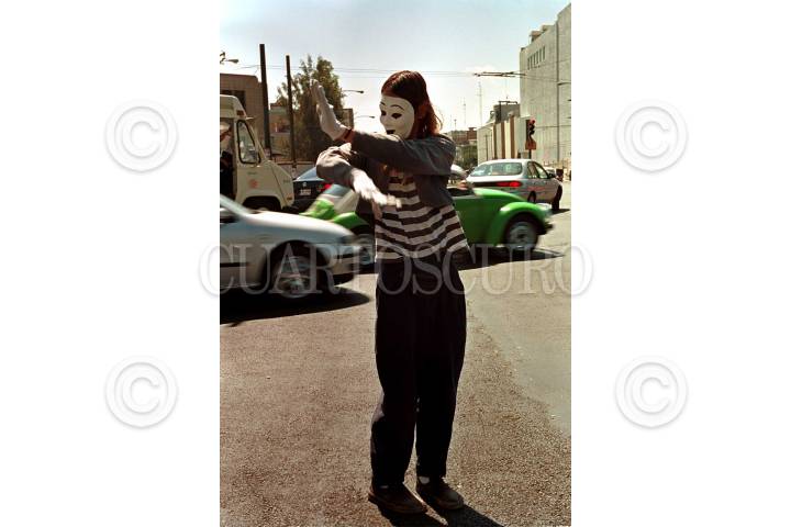 En el cruce de Balderas y Chapultepec este mimo pasa algunas horas amenizando el caos vial por unas cuantas monedas.FOTO: Sandra Perdomo/CUARTOSCURO.COM