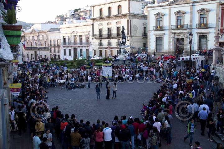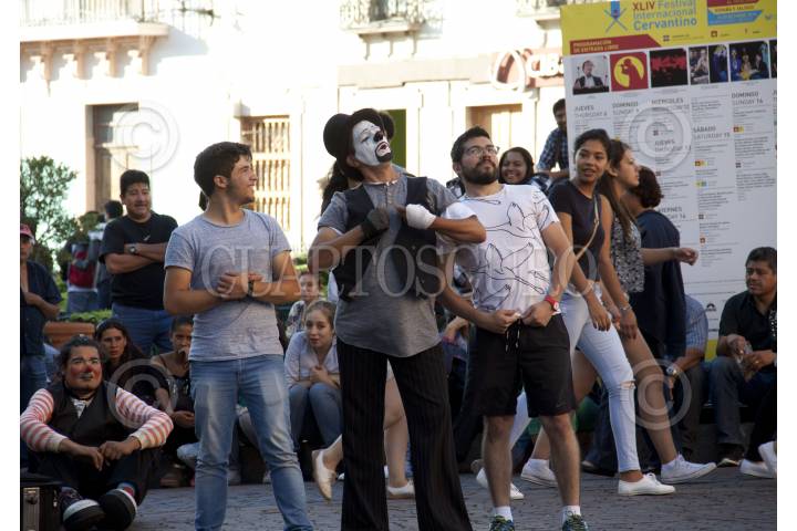GUANAJUATO, GUANAJUATO, 070CTUBRE.- Mimos callejeros divierten a turistas que visitan la ciudad guanajuatense en la edición XLIV del Festival Internacional Cervantino. Para ganarse unas monedas. FOTO: ANTONIO CRUZ /CUARTOSCURO.COM