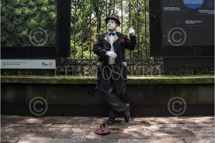CIUDAD DE MÉXICO, 09JULIO2016.- Un grupo de mimos entretienen a las personas que caminan por los pasillos de la primera sección del bosque de Chapultepec, buscando sacar una sonrisa a los espectadores. FOTO: DIEGO SIMÓN SÁNCHEZ /CUARTOSCURO.COM