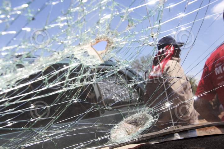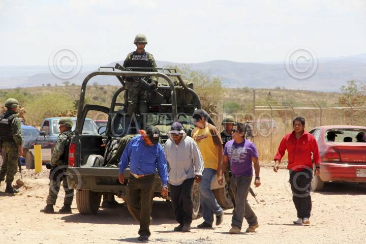 OJOCALIENTE, ZACATECAS, 03JUNIO2013.- Continúa el paro de labores de más de 700 mineros en la Minera Real de Ángeles, Unidad El Coronel, perteneciente al Grupo Frisco, propiedad de Carlos Slim en la colindancia entre los municipios de Ojocaliente y Luis Moya Zacatecas. El viernes pasado, este grupo fue agredido por integrantes de la CROC y otros sindicatos mineros con un total de 200 personas aproximadamente para que levantaran el paro. El resultado fue 7 heridos y más de 40 coches dañados pertenecientes a los paristas. Se culpa de esta agresión a Carlos Pavón, mientras éste en comunicado de prensa dijo que es Napoleón Gómez Urrutia el que está causando estos problemas. FOTO: ALEJANDRO ORTEGA NERI / CUARTOSCURO.COM