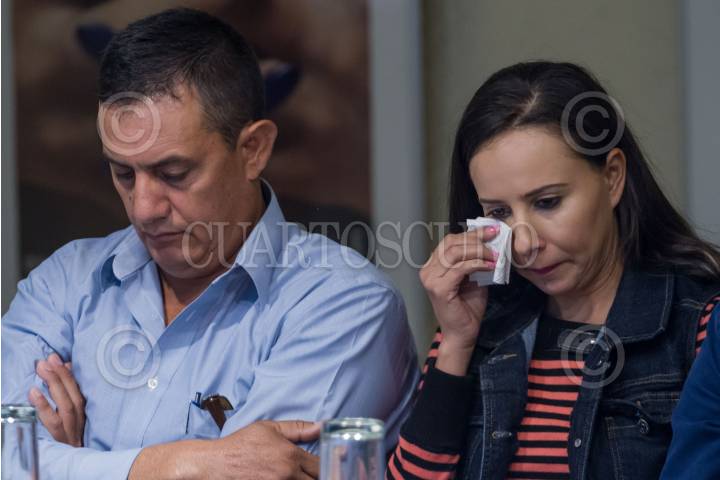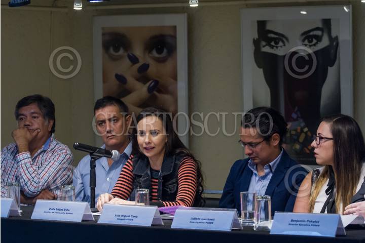 MÉXICO, D.F., 04AGOSTO2015.- Adolfo López Peralta y Zoila López Villa, del comité de Cuenca Río Sonora, así como Luis Miguel Cano y Julieta Lamberti, abogado e investigadora de la organización PODER, respectivamente, durante la conferencia de prensa para denunciar las afectaciones que sufren los pobladores por el derrame tóxico en el Río Sonora proveniente de la mina Buenavista del Cobre, subsidiaria de Grupo México, ocurrido el pasado 6 de agosto de 2014. FOTO: ISAAC ESQUIVEL /CUARTOSCURO.COM