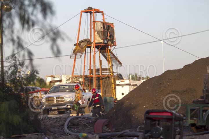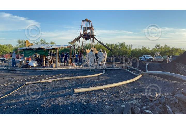 Continúan los trabajos de rescate de 10 mineros en el pozo de carbón El Pinabete, para extraer el agua que inundo la mina, que tiene 60 metros de profundidad, para tal cometido autoridades han habilitado tres pozos de 34 metros para desazolvar la oquedad e iniciar los trabajos de recuperación.