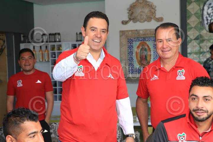 ZACATECAS, ZACATECAS, 28ABRIL2016.- Alejandro Tello Cristerna, candidato de la Alianza Zacatecas Primero, deseó el mejor de los éxitos al equipo de todos, Mineros de Zacatecas, quienes enfrentarán este jueves a los Leones Negros de la Universidad de Guadalajara. "Sé que vamos a ganar, somos un equipo triunfador y estoy convencido de que llegaremos a la final", dijo el abanderado del PRI-PVEM-PANAL a los jugadores de Mineros, a quienes saludó durante la concentración, horas antes de su encuentro de la etapa semifinal del circuito de ascenso del Fútbol Mexicano. FOTO: CUARTOSCURO.COM