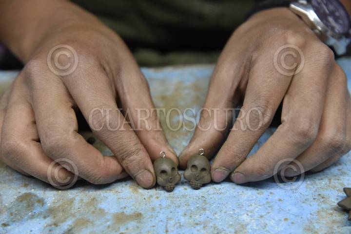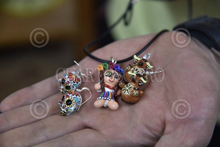 METEPEC, ESTADO DE MÉXICO, 17ABRIL2019.- Dylán Hernández Vázquez a sus 23 años creó una línea de joyería en miniatura de barro, la cual elabora en el taller familiar Arte en Miniatura Juan Hernández Arzaluz, su bisabuelo, abuelo, padre y hermanos se han dedicado a la elaboración de artesanías de barro, el aprendió desde pequeño este oficio y con su línea de joyería ha podido pagar sus estudios de Ingeniería Industrial, figuras como el árbol de la vida, mariposas, catrinas, muñecas, soles, jarros, han sido las figuras que ha convertido en pulseras, aretes y collares. FOTO: ARTEMIO GUERRA BAZ /CUARTOSCURO.COM