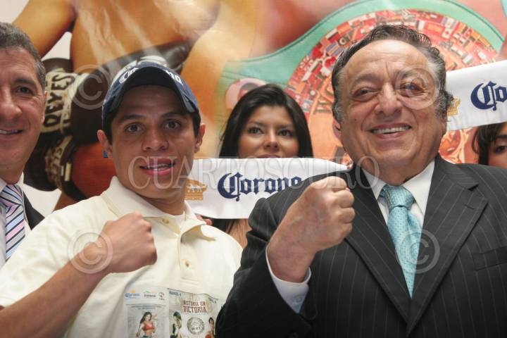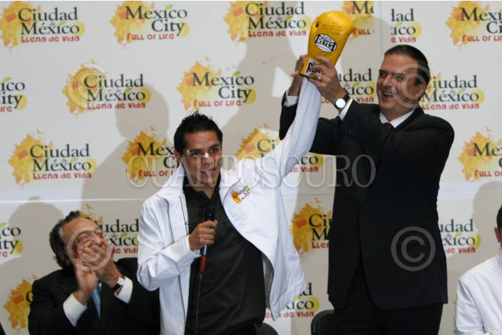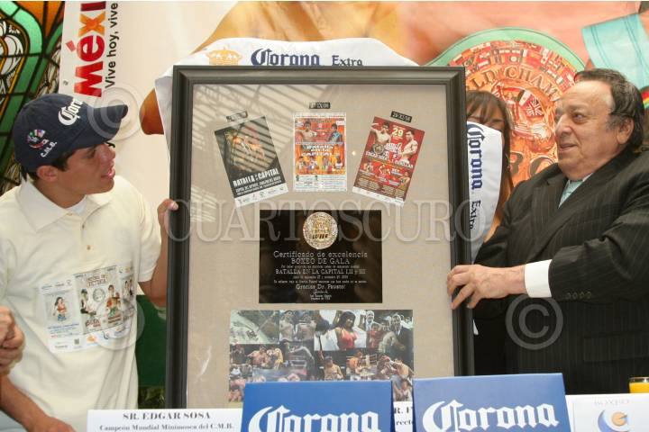 MÉXICO, D.F., 11FEBRERO2009.- Edgar Sosa campeón mundial minimosca y Jose Sulaiman presidente del Consejo Mundial de Boxeo, resivieron un certificado de excelencia de boxeo de gala por parte del Consejo Mundial de boxeo, por promover este deporte en el Distrito Federal, esto durante la presentacion de la función boxistica ¡HISTORIA EN VICTORIA! que se realizara en Ciudad Victoria, Tamaulipas el 4 de abril en el Centro de Espectáculos Recinto Ferial de Ciudad Victoria. FOTO: RICARDO CASTELAN/CUARTOSCURO.COM