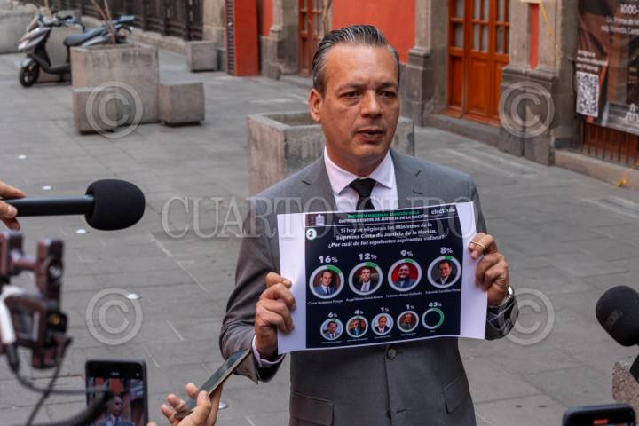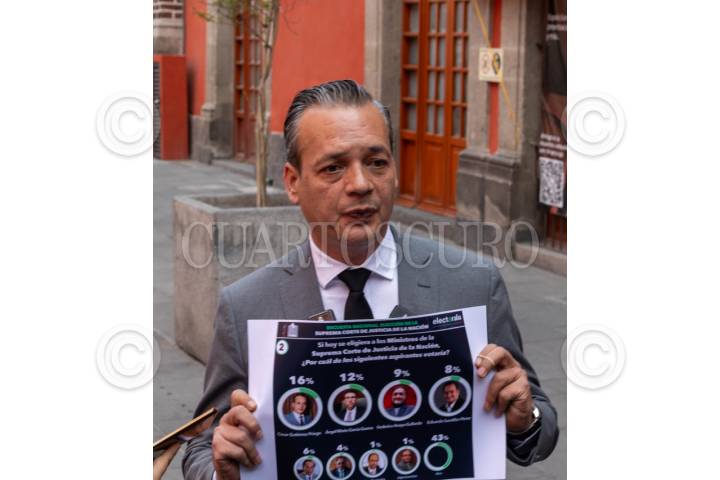 CIUDAD DE MÉXICO, 31MARZO2025.- César Gutiérrez Priego candidato a la Suprema Corte de Justicia de la Nación ofreció una rueda de prensa afuera de Palacio Nacional y ahí exigió al INE piso parejo en la elección a candidatos al Poder Judicial. FOTO: MOISÉS PABLO/CUARTOSCURO.COM