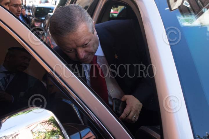 CIUDAD DE MÉXICO, 21OCTUBRE2019.- Arturo Zaldívar Lelo de Larrea, ministro presidente de la SCJN, salió presuroso de la vieja Casona de Xiconténcatl para evitar a los medios de comunicación al finalizar la presentación de la iniciativa "Reforma con el y para el Poder Judicial". FOTO: MOISÉS PABLO /CUARTOSCURO.COM