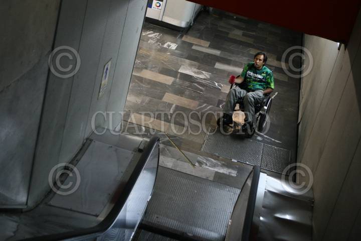 MÉXICO, D.F., 24FEBRERO2011.- Un minusválido pide limosna en uno de los andenes del Metro de la ciudad de México. FOTO: ISAAC ESQUIVEL/CUARTOSCUR5O.COM