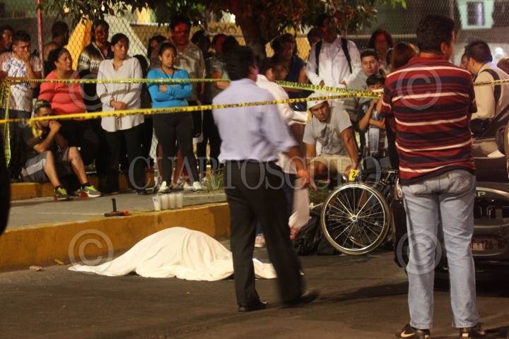MÉXICO, DISTRITO FEDERAL., 22ABRIL2015.- Un hombre que se desplazaba con su silla de ruedas, sobre la avenida Fuerte de Loreto a la altura de la calle Fernando Garcilaso, colonia Ejercito Agrarista en Iztapalapa, fue asesinado de al menos un impacto de arma de fuego en la cara, por delincuentes que lograron darse a la fuga. Este hombre, se desempeñaba como coordinador de minusválidos en la delegación Iztacalco. FOTO: LUIS CARBAYO /CUARTOSCURO.COM
