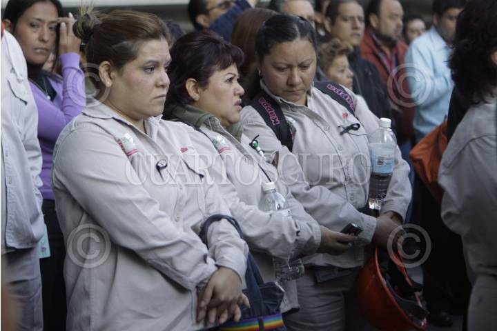 MÉXICO, D.F., 06FEBRERO2013.- Más de ocho mil trabajadores regresaron a sus labores a la Torre de Petróleos Mexicanos luego de que permaneció cerradda durante seis días debido a una explosión en el sótano del edificio B2 que dejó como saldo 37 trabajadores muertos. A las 09:30 a. m. se realizó un minuto de silencio en memoria de las víctimas. FOTO: IVÁN STEPHENS /CUARTOSCURO.COM