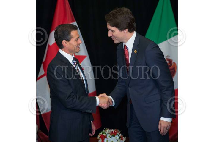 ANTALYA, REPÚBLICA DE TURQUIA, 15NOVIEMBRE2015.- El Presidente de la República, Enrique Peña Nieto, se reunió hoy con Justin Trudeau, Primer Ministro de Canadá, en el marco de la Cumbre de Líderes del G20. Fue la primera reunión que sostiene el premier canadiense con un Jefe de Estado, reiterando con ello la importancia que el nuevo gobierno canadiense concede a la relación con México. FOTO: PRESIDENCIA /CUARTOSCURO.COM