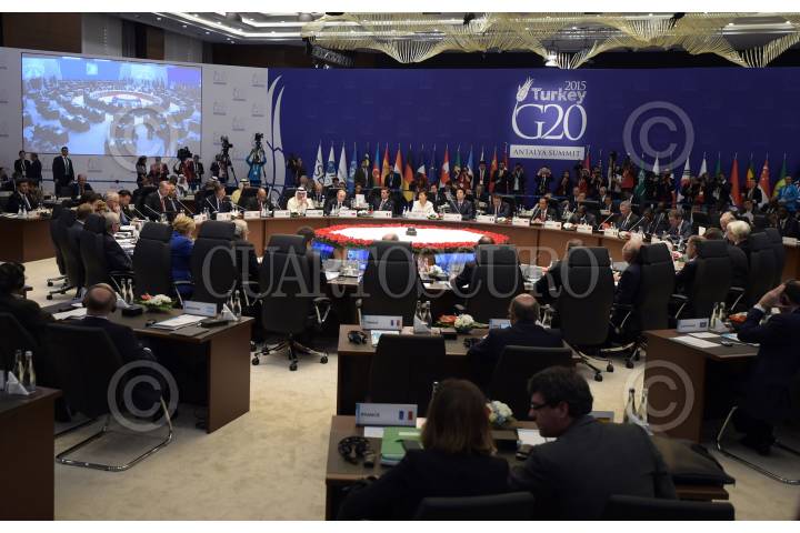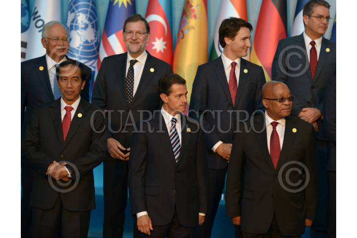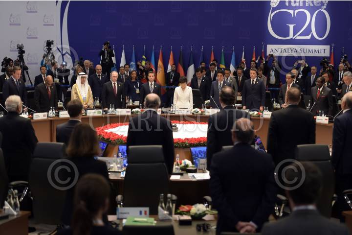 ANTALYA, REPÚBLICA DE TURQUIA, 15NOVIEMBRE2015.- En el marco de la Primera Sesión de Trabajo de la Cumbre de Líderes del G20, el Primer Mandatario, Enrique Peña Nieto, y los Jefes de Estado y de Gobierno participantes, guardaron un minuto de silencio en memoria de las víctimas de los atentados en París. FOTO: PRESIDENCIA /CUARTOSCURO.COM