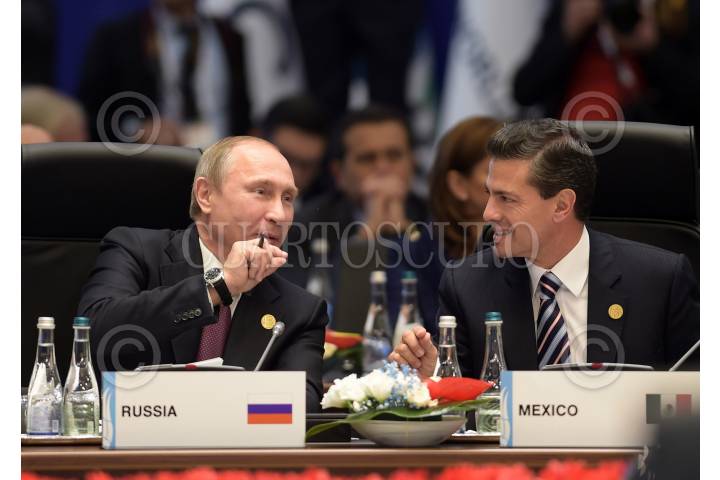 ANTALYA, REPÚBLICA DE TURQUIA, 15NOVIEMBRE2015.- En el marco de la primera Sesión de Trabajo de la Cumbre de Líderes del G20, el Presidente de la República, Enrique Peña Nieto, dialogó con el Presidente de la Federación Rusa, Vladimir Putin. FOTO: PRESIDENCIA /CUARTOSCURO.COM