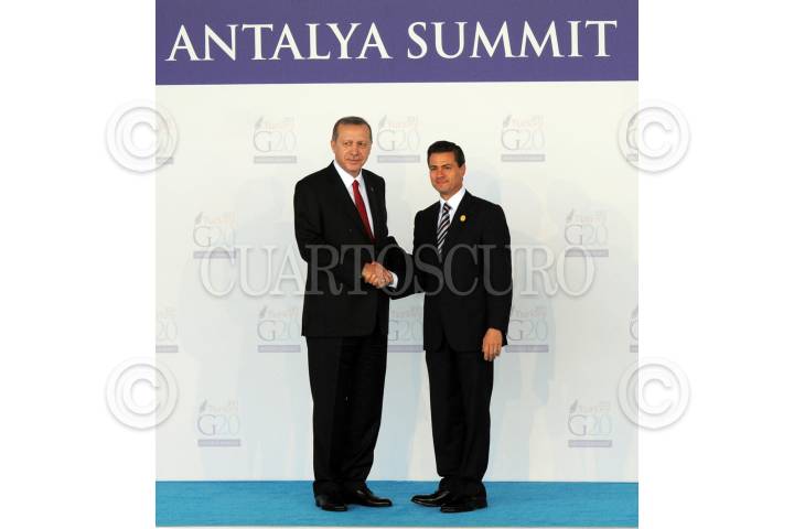 ANTALYA, REPÚBLICA DE TURQUIA, 15NOVIEMBRE2015.- En el marco de la Cumbre de Líderes del G20, el Presidente Enrique Peña Nieto asistió a la bienvenida oficial que ofreció el Presidente de la República de Turquía, Recep Tayyip Erdogan, a los Jefes de Estado y de Gobierno participantes. FOTO: PRESIDENCIA /CUARTOSCURO.COM
