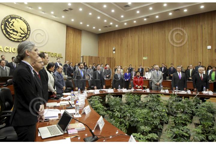 MÉXICO, D.F., 10SEPTIEMBRE2014.- Minuto de silencio en memoria del estudiante normalista de Ayotzinapa Alexander Mora Venancio en la Sesión Extraordinaria del Consejo General del INE el día hoy 10 de Diciembre de 2014. FOTO: ESPECIAL /CUARTOSCURO.COM