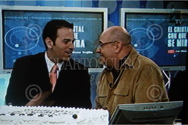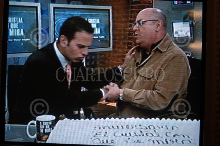 MEXICO D.F. 11OCTUBRE2006.- Carlos Loret acompaño a Victor Trujillo en el ultimo programa ¨El Cristal con que se mira¨. Concluye el conductor después de dos años su programa de noticias en Canal 4. FOTO: Televisa/CUARTOSCURO.COM