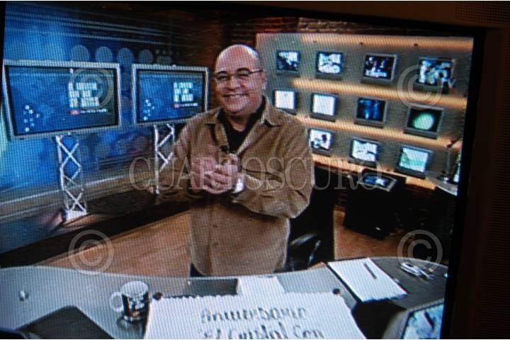 MEXICO D.F. 11OCTUBRE2006.- Victor Trujillo durante su ultimo programa ¨El Cristal con que se mira¨. Concluye el conductor después de dos años su programa de noticias en Canal 4. FOTO: Televisa/CUARTOSCURO.COM