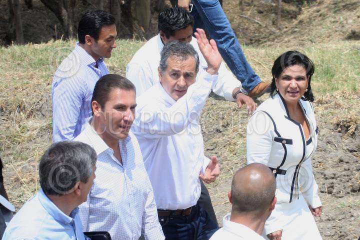 SAN ANDRÉS CHOLULA, PUEBLA, 04MAYO2011.- Rafael Moreno Valle, gobernador del estado junto al secretario de Medio Ambiente y Recursos Naturales, Rafael Elvira Quesada, inauguraron el Módulo de Información del Río Atoyac, que es un centro itinerante de difusión y promoción del rescate de la cuenca del río Atoyacel, posteriormente los funcionarios realizaron un recorrido en lo que será la construcción del Paseo del Río Atoyac que contará con una inversión de 157 millones de pesos por parte del estado y con una inversión de 100 millones provenientes de la federación. FOTO: FRANCISCO GUASCO/CUARTOSCURO.COM