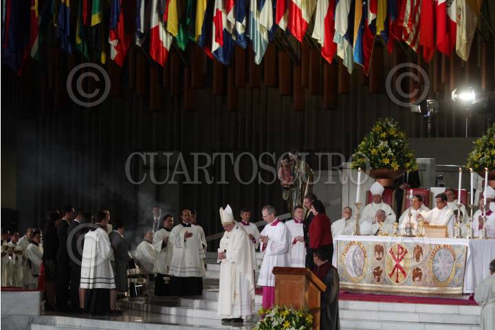 CIUDAD DE MÉXICO, 13FEBRERO2016.- La misa que el Papa Francisco oficia la Basílica de Guadalupe está próxima a terminar. Posterior a la celebración de la Eucaristía el pontífice regresará a la Nunciatura Apostólica. FOTO: MARÍA JOSÉ MARTÍNEZ /CUARTOSCURO.COM