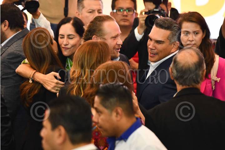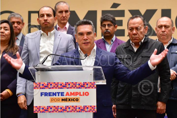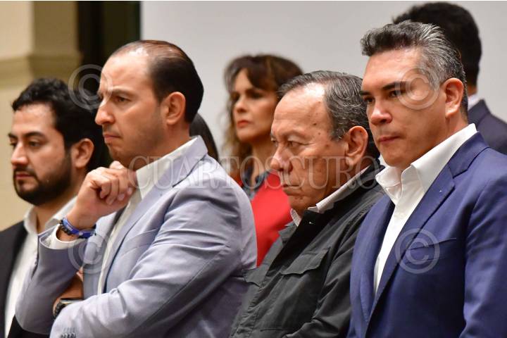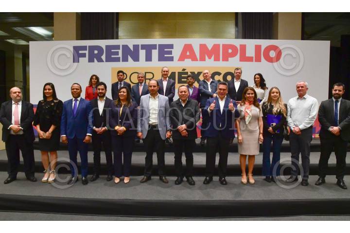 Los dirigentes nacionales Marko Cortés (PAN), Alejandro Moreno (PRI) y Jesús Zambrano, (PRD), junto a integrantes de las secretarías generales, coordinadores parlamentarios y del comité organizador del Frente Amplio por México, encabezaron la presentación de los observadores que conformarán la "Misión de Acompañamiento Cívico" en el procedimiento interno de la elección del coordinador general de la coalición.